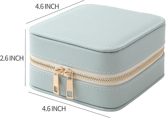 Genuine Leather Travel Jewelry Organizer Case with Mirror for Women, Small Mini Portable Jewelry Box for Ring Earrings Necklace Bracelet Luxury Gift for Women(Cyan)