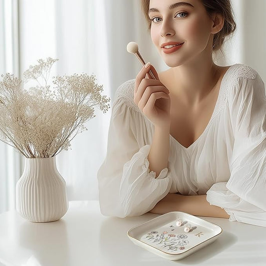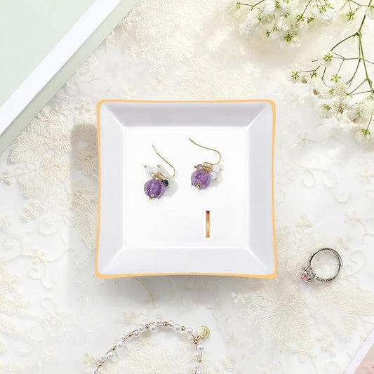 OASSIE Valentines Day Gifts for Women - 4"x4" Ceramic Jewelry Dish Tray - Wedding Bridesmaid Gifts for Sister, Ring Holder for Women, Jewelry Tray for Maid of Honor Proposal