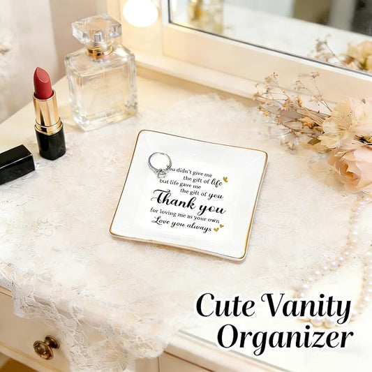 PUDDING CABIN Galentines Gifts for Step Mom Gifts for Valentine's Mother's Day Ring Dish Jewelry Tray - Thank you for loving me as your own - Birthday Gifts for Stepmom Stepmother