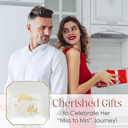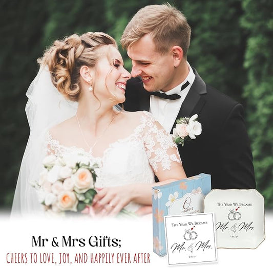 OASSIE Christmas Wedding Gifts for Couples 2025 - Mr and Mrs Gifts 4"x4" Ceramic Jewelry Dish Tray - Bridal Shower Engagement Gifts for Bride Women Newlyweds Marriage Just Married