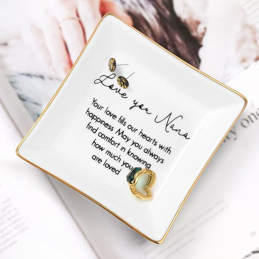 PUDDING CABIN Nana Gift – Trinket Dish with “Love You Nana, Your Love Fills Our Hearts” – Gift for Nana, Grandma – Birthday, Mother’s Day, Christmas, Thank You, Appreciation Gift – 4x4 Inch