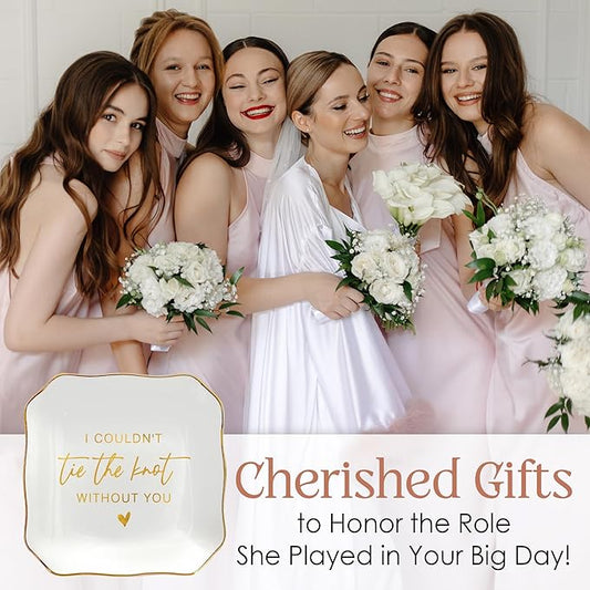 OASSIE Valentines Day Gifts for Her - 4"x4" Ceramic Jewelry Dish Tray - Bridal Shower Wedding Gifts for Women, Jewelry Tray for Bridesmaid Proposal Gift, Maid of Honor Gift for Friend Sister