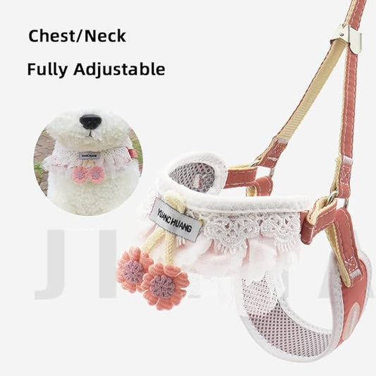 Pink Sunflower Y-Harness Leash for Small Dogs & Cats - Adjustable Pet Lead (3.3-22lbs), 5ft Reflective Safety Leash with Padded Vest, Chihuahua/Yorkie/Pomeranian (S(3.3-11ib))
