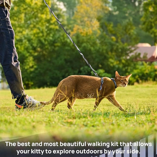 Cat Harness and Leash Set - Escape Proof Adjustable Cat Harness, Comfortable Soft Lightweight, Use Safe & Easy, Walking Travel Kitten Harness for Small Medium Large Cats (Brooklyn Grey)