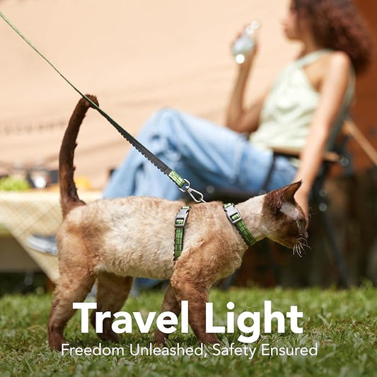 Cat Harness and Leash Set - Escape Proof Adjustable Cat Harness, Comfortable Soft Lightweight, Use Safe & Easy, Walking Travel Kitten Harness for Small Medium Large Cats (Green Cat Whispers)