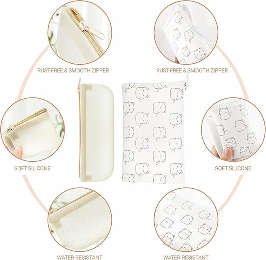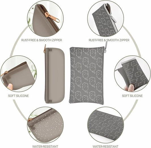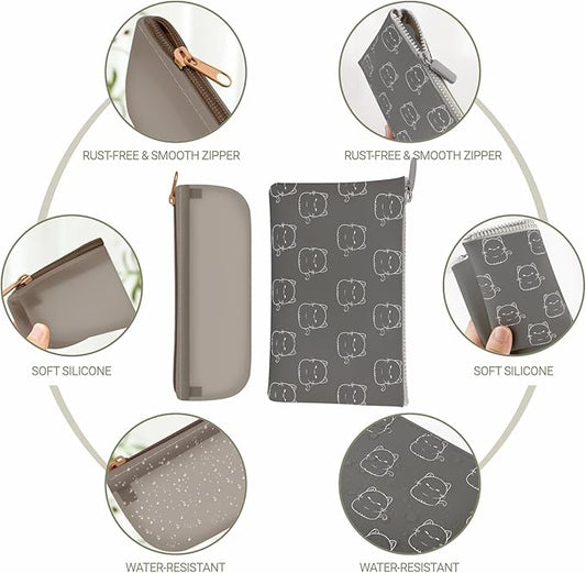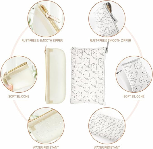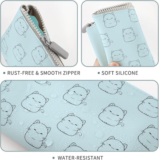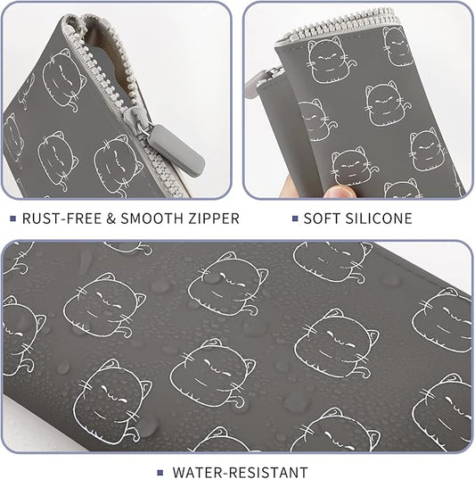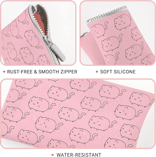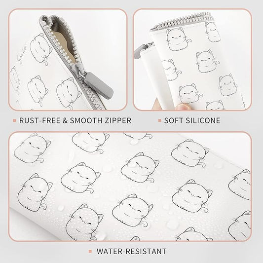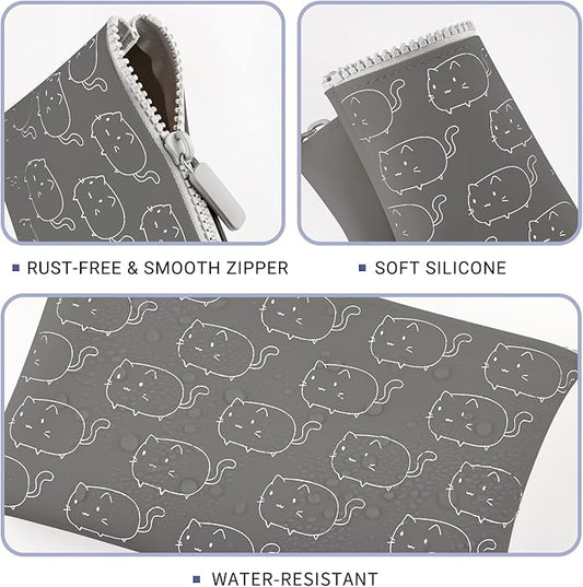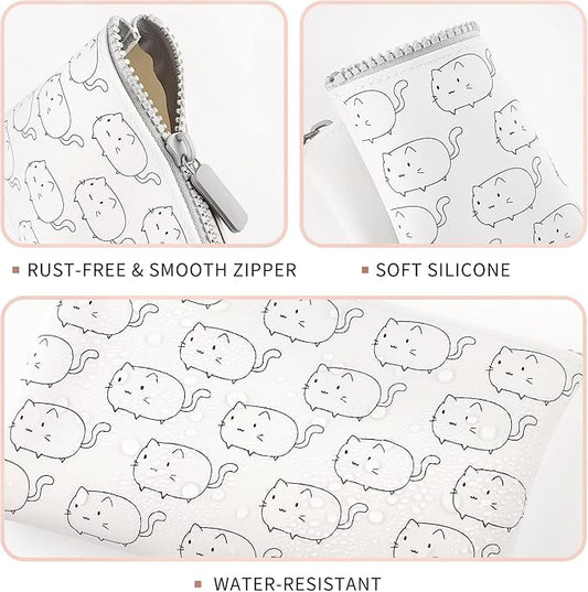 Manmihealth Cute Cat Silicone Makeup Bag, Cosmetic Bags for Women, Makeup Brushes Holder Travel, Portable Purse Pouch for Travel Essentials, Zipper Storage Organizer Bag, 2-Pack
