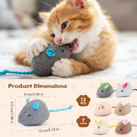 WRW 12PCS 2.36 Inch Cat Mouse Toys, Prefilled Catnip Plush Cat Mice Toys, Realistic Design Interactive Catnip Toys for Indoor Cats Play Fetch(7 Colors)