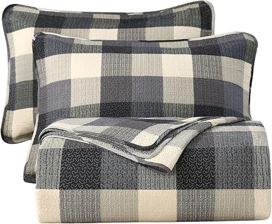 vctops Cotton Quilted Patchwork Quilt Set Queen Size Farmhouse Blue Plaid Bedspreads Coverlet 3 Pieces Summer Lightweight 1 Quilt and 2 Pillow Shams for All Season (Plaid C,Queen)