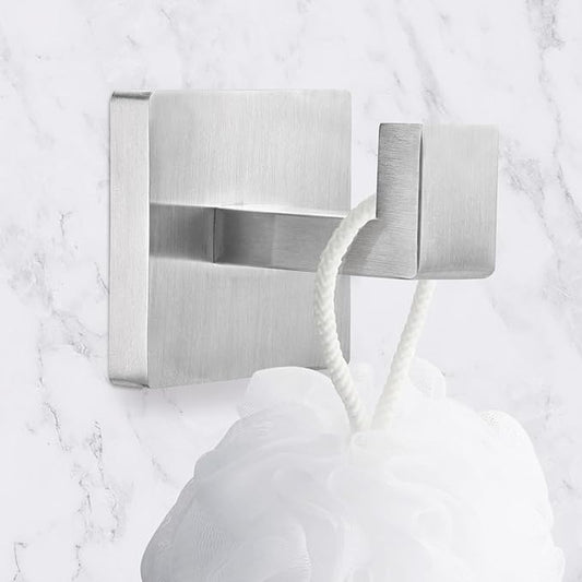 Heavy Duty Stainless Steel Towel Hooks, Wall Mounted Square Robe Hooks for Bathroom, Kitchen, Bedroom, Hotel Brushed Nickel 2 Pack