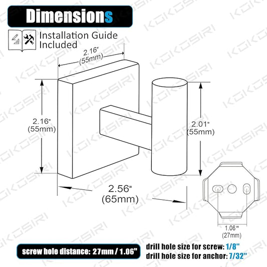 KOKOSIRI Bath Towel Hook Wall Mount Square Robe Hook Coat Hook, Bathroom Kitchen Garage Heavy Duty Wall Mounted, SUS 304 Stainless Steel, Brushed Nickel, B1010BR-P2