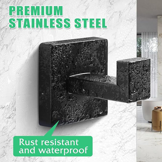 Heavy Duty Stainless Steel Towel Hooks, Wall Mounted Square Robe Hooks for Bathroom, Kitchen, Bedroom, Hotel Matte Black 2 Pack
