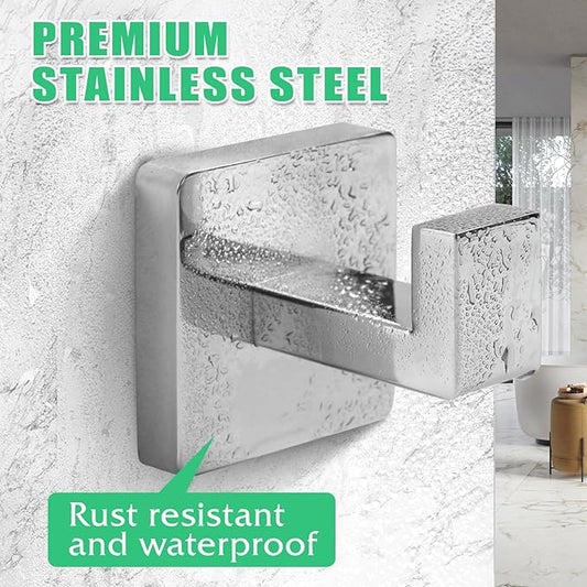 Heavy Duty Stainless Steel Towel Hooks, Wall Mounted Square Robe Hooks for Bathroom, Kitchen, Bedroom, Hotel Chrome Polished 2 Pack