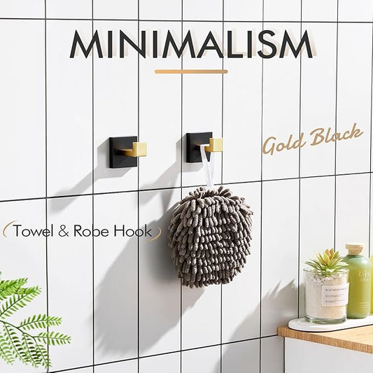 KOKOSIRI Robe Hooks for Bathrooms Towel Hook Wall Mounted Coat Hooks, Bathroom Hardware 2 Pack Black with Gold Stainless Steel B1013GDK-P2