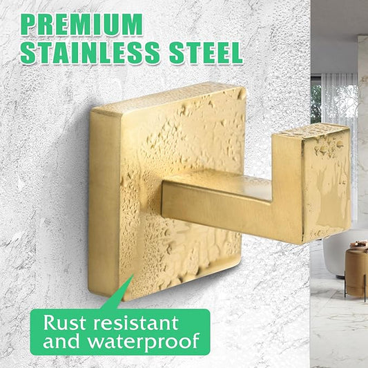 IBosins 4 Pack Towel Hooks Hand Towel Holder for Bathroom Wall Livingroom Bedroom Kitchen Closet Heavy Duty Stainless Steel Hook Hanger for Robe, Bath Towel, Coat (Square Brushed Gold)