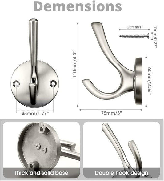 4 Pack Brushed Nickel Coat Hooks - Silver Robe & Towel Hooks for Bathrooms & Kitchen