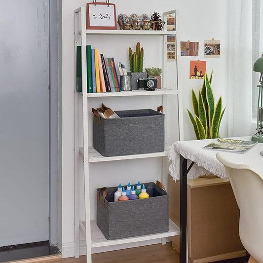 BALEINE 2 Pack Fabric Storage Bins for Shelves, Linen Storage Baskets for Organizing, Decorative Closet Bins for Clothes, Home (Grey, 17''x13''x10.5'')