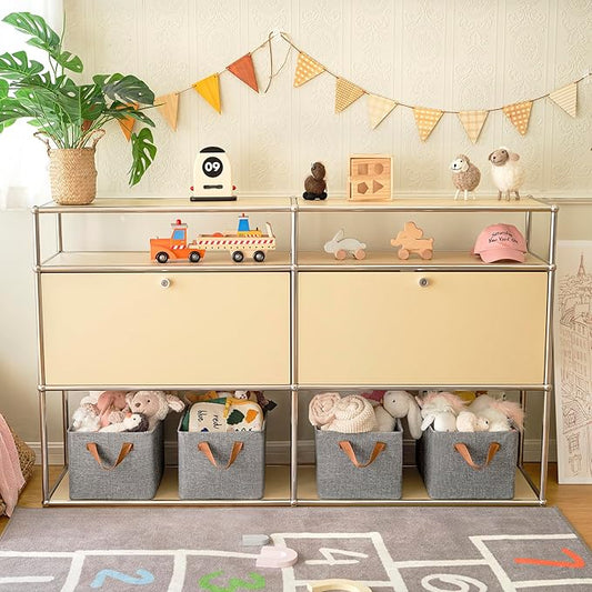 GRANNY SAYS Closet Storage Baskets, Collapsible Fabric Storage Bins with Metal Frame, Clothes Organizer Bins, Extra Large Baskets for Shelves, Ivory, 4-Pack