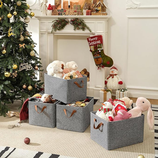 GRANNY SAYS Closet Storage Baskets, Collapsible Fabric Storage Bins with Metal Frame, Clothes Organizer Bins, Extra Large Baskets for Shelves, Gray, 4-Pack
