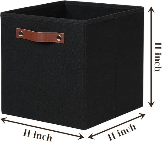 Temary 11x11 Storage Cubes Fabric Cube Storage Bins with Handles Clothes Storage Boxes Baskets for Organizing Home, Shelf, Closet (Black, 11 x 11 x 11)