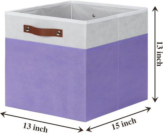 Temary Foldable Cube Baskets 4Pack - Clothes Shelf Storage with Handles, Fabric Storage Organizer Bins (White&Purple, 13x15x13 Inch)