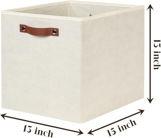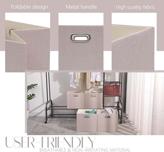 Temary Cube Storage Bins 4Pack Foldable Storage Baskets for Clothes Shelf Basket with Handles, Fabric Storage Boxes Organizer Bins for Home (Beige, 13x15x13 Inch)