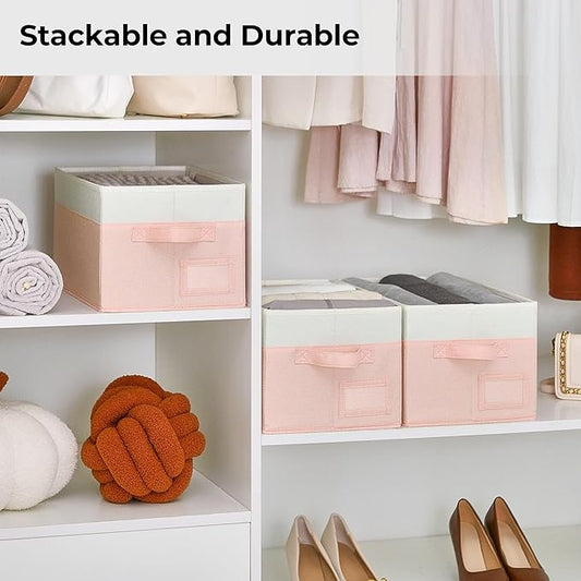 Temary Foldable Cube Baskets 4Pack - Clothes Shelf Storage with Handles, Fabric Storage Organizer Bins (White&Pink, 13x15x13 Inch)