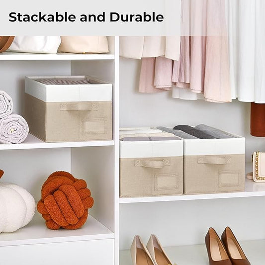 GRANNY SAYS Storage Baskets for Organizing, Fabric Storage Bins for Shelves, Closet Storage Boxs, Clothing Storage and Organization, Decorative Storage Bins, Khaki&Ivory, Large, 3-Pack
