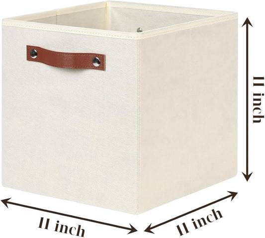 Temary 11x11 Storage Cubes Fabric Cube Storage Bins with Handles Clothes Storage Boxes Baskets for Organizing Home, Shelf, Closet (Beige, 11 x 11 x 11)