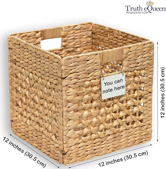 Water Hyacinth Storage Baskets For Organizing, Wicker Baskets For Storage Cube Organizer, Rattan Basket Set, Woven Basket Organizer, Canastas Para Organizar, Cube Shelf, Cubes Bins 12x12 In, 4 Psc
