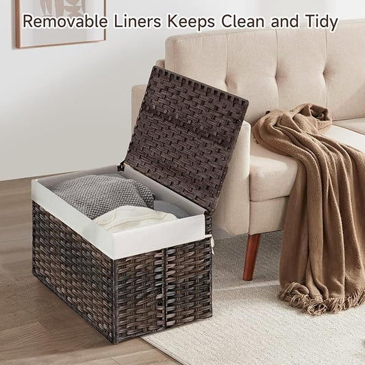 180L Wicker Storage Basket with Lid, Handwoven Rattan Large Shelf Basket with Removable Liner, 47.6 Gallon Wicker Basket for Blanket, Storage Trunk with Handle for Closet, Bedroom, Livingroom, Brown