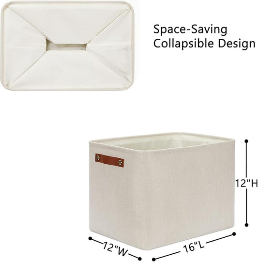 DULLEMELO 2-Pack Large Storage Baskets for Organizing 16"x12"x12" Canvas Fabric Storage Basket Bins With Leather Handles for Shelf Clothes Empty Gift Basket (Beige)