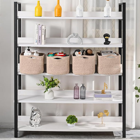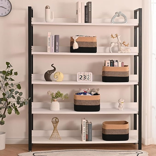 Storage Baskets for Shelves Organizing, Woven Cotton Rope Baskets for Storage, Book Basket, Decorative Shelf Basket, 12.5"Lx9.1''Wx7.9''H (4 Packs) Black & Jute