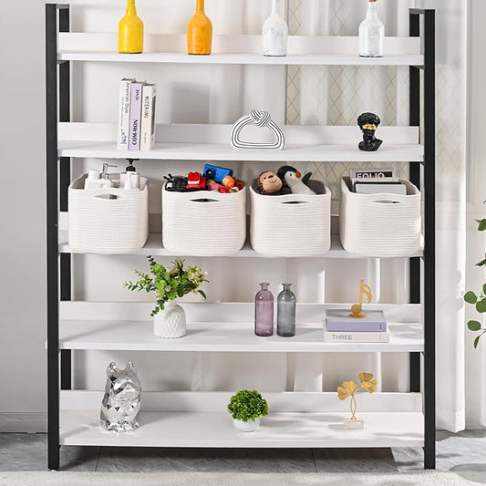 Storage Baskets for Organizing & Shelves, Woven Cotton Rope Organization Bins for Dog Toys, Clothes, Books, Nursery Organizer, 15" Lx11''Wx9.5''H, (4 Packs) Off White