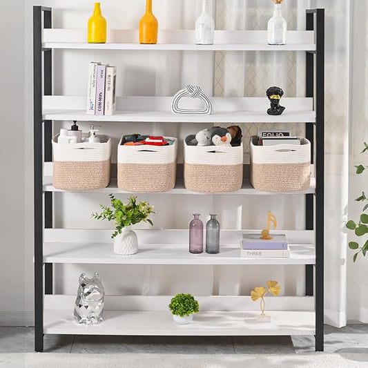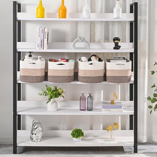 Storage Baskets for Shelves Organizing, Woven Cotton Rope Baskets for Storage, Book Basket, Towel Basket, 12.5"Lx9.1''Wx7.9''H (4 Packs) Gradient Black & Jute