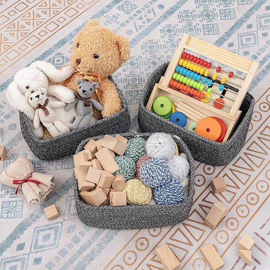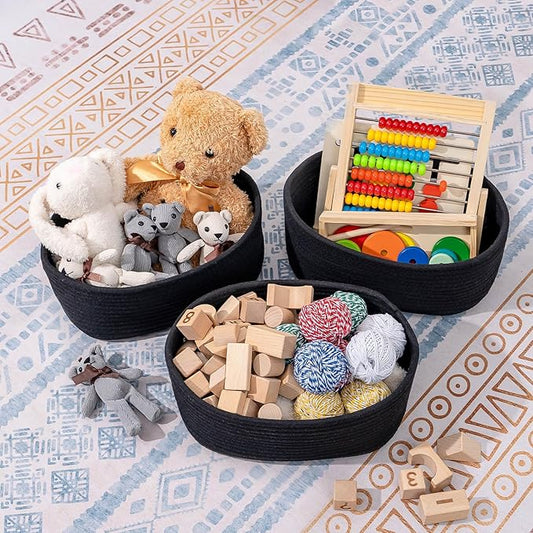 CubesLand Black Baskets Bins for Organizing,Small Woven Storage Baskets for Shelves,Cute Closet Cube Bins Set 3,Baby Nursery Toys Cube Bin,Home Decor Organization Storage