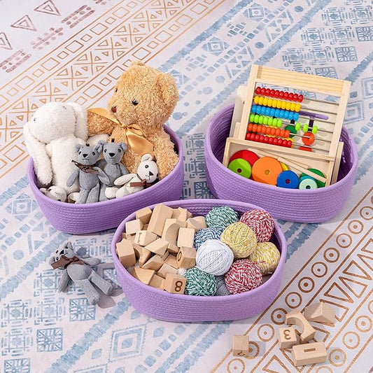 CubesLand Sturdy Woven Rope Storage Baskets, Purple, 2 Packs, 12" x 8" x 5.11"
