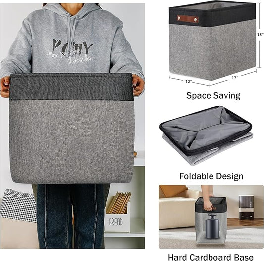 DULLEMELO Fabric Storage Bins 16x12x12 inches, Large Rectangular Storage Baskets 2 Pack, Collapsible Storage Organizer Decorative Storage Boxes for Closet, Toys, Clothes, Home, Office (Grey)