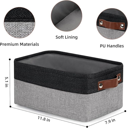 DULLEMELO Small Storage Baskets for Organizing - 11.8x7.9x5.1 inch Collapsible Storage Bins Set of 2 cloth storage bins for organizing Books and towel storage (Black&Grey)