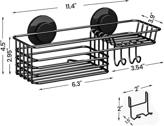 LEVERLOC Shower Caddy Suction Cup, Suction Caddy with Hooks and Soap Holder for Bathroom, No-Drilling Bathroom Shower Organizer, Black