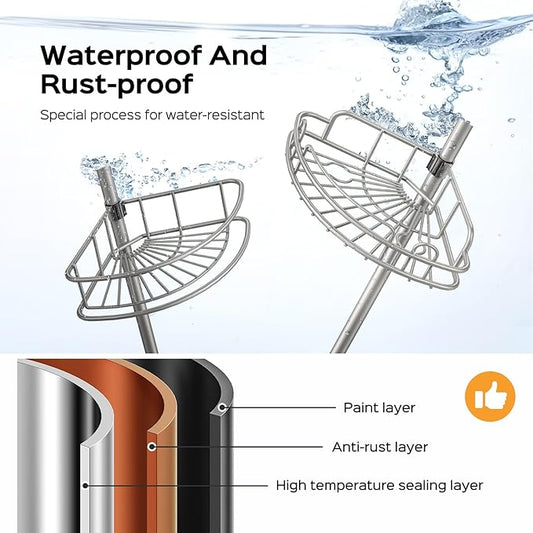 SEIRIONE Rustproof Shower Corner Caddy Organizer for Bathroom, 4 Adjustable Shelves with Tension Pole, for Bathtub Shampoo Accessories Storage Holder, 34 to 116 Inch Height