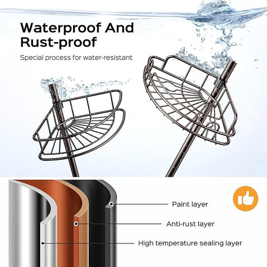 SEIRIONE Rustproof Shower Corner Caddy Organizer for Bathroom,Tension Pole with 4 Baskets, for Bathtub Storage Rack, 34 to 116 Inch Height, Bronze
