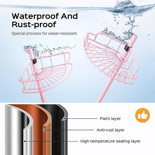 HAMITOR Corner Shower Caddy Tension Pole: 4-Tier Rust-Resistant Adjustable Bathroom Organizer Shelves - 47-121 Inch No-Drill Quick Installation - Space-Saving Storage for Renters Family - Pink