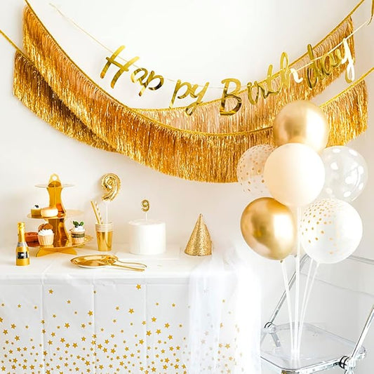Premium Gold Fringe Tinsel Garland for Party Decorations -4 Layers Thick, 2 Pack | LILF Foil Metallic Tinsel Banner Party Streamers for Wedding Birthday Christmas Decoration Home Hanging Decor