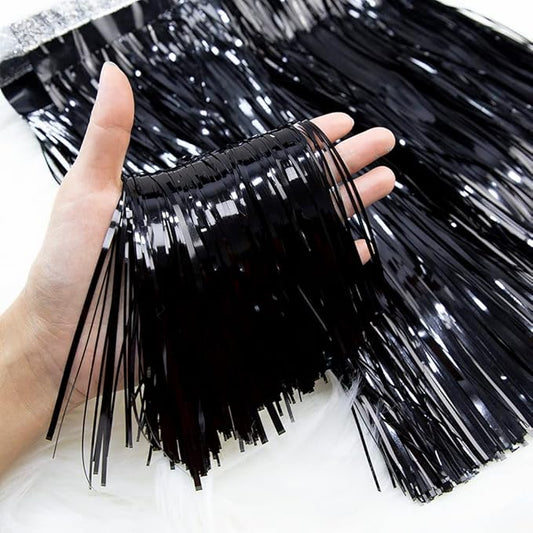 Premium Black Fringe Tinsel Garland for Party Decorations -4 Layers Thick, 2 Pack | LILF Foil Metallic Banner Party Streamers for Wedding Birthday Christmas Decoration Home Hanging