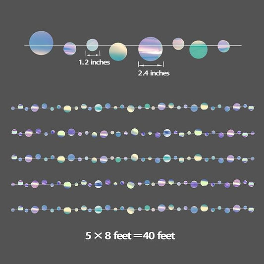 Cheerland Iridescent Circle Garlands Under The Sea Party Decorations Holographic Ocean Party Hanging Streamers for Mermaid Birthday Bubble Backdrop Sea Wedding, Baby Shower Mermaid Party Supplies