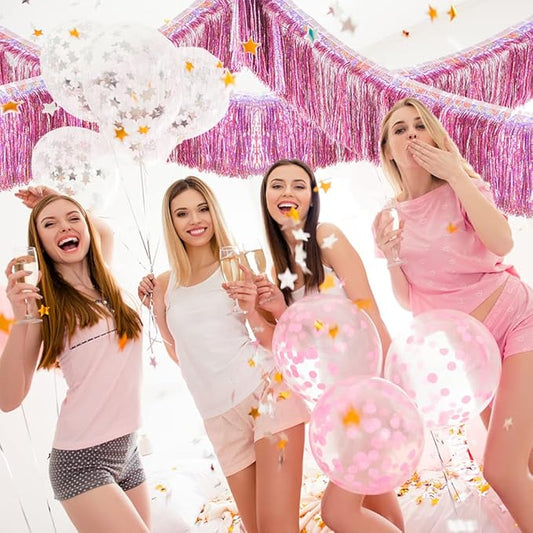 Premium Glitter Pink Fringe Tinsel Garland for Party Decorations -4 Layers Thick, 2 Pack | LILF Foil Metallic Banner Party Streamers for Wedding Birthday Christmas Decoration Home Hanging