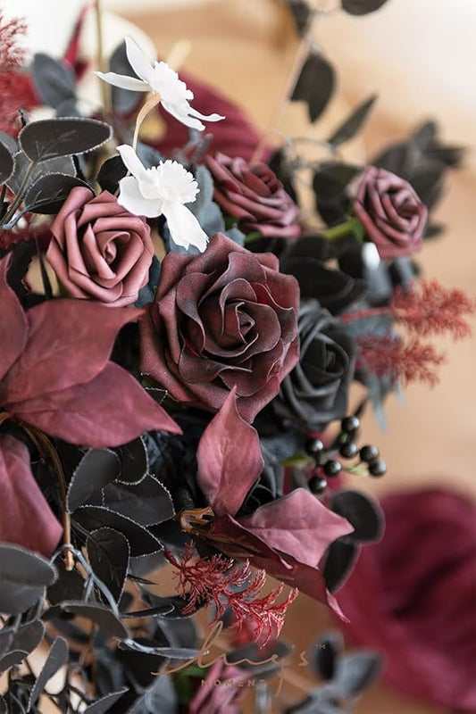 Ling's moment 2PCS Black Artificial Floral Swags Arch Flowers Burgundy Wedding Rose Garland Greenery Arrangements Centerpieces for Sweetheart Table Decor Wall Window Garden Decor Maroon Gothic