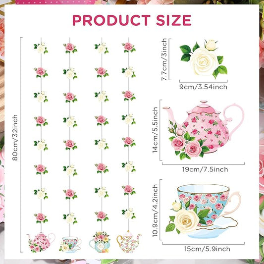 Faccito Floral Tea Party Decorations Double Sided Tea Party Hanging Garland Decor for Baby Shower Gender Reveal Bridal Wedding Favors Girls Women 32", 8 Pack