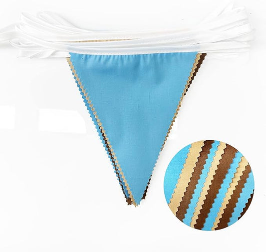 32Ft Brown Blue Party Decorations Brown Blue Pennant Banner Fabric Triangle Flag Bunting Garland Streamers for Teddy Bear Safari Wild Baby Shower Gender Reveal Birthday Theme Party Decor