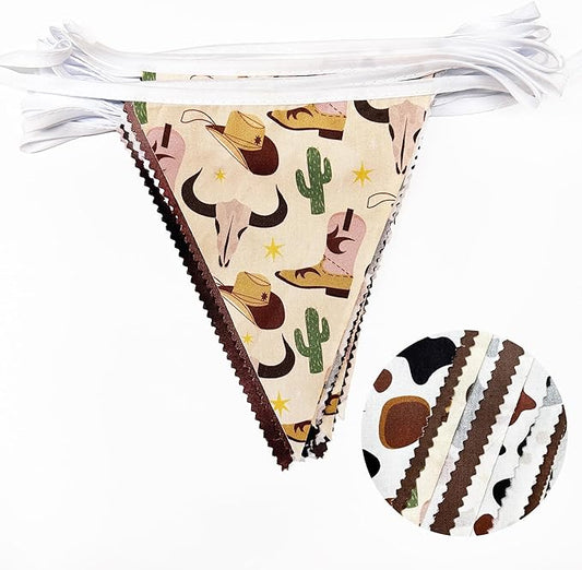 32Ft Cow Party Decorations Western Cowboy Triangle Flag Fabric Banner Pennant Garland Streamer for Western Cowgirls Cowboys Birthday Baby Shower Derby Day Festival Farm Cow Wild Party Decor Supplies